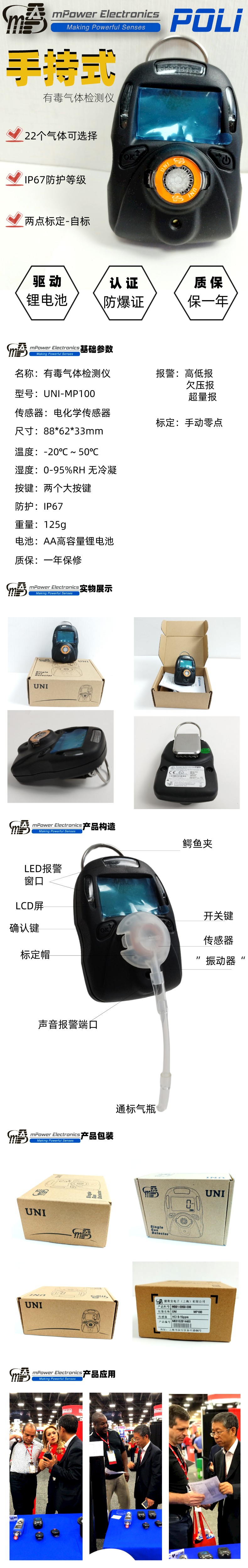 MP100盟蒲安单一气体检测仪产品概述: