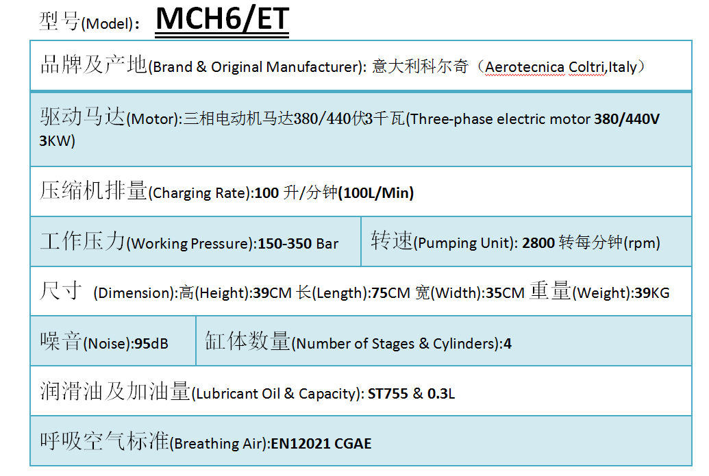 原装进口意大利科尔奇MCH6压缩空气充气泵,船舶高压呼吸级空气压缩机是一款移动便携式呼吸空气压缩机。用于消防、潜水、船舶、打捞救助等领域。外观大方,振动低,操作方便,高可靠性,随时随地为你储备和制造清洁的高压空气。
